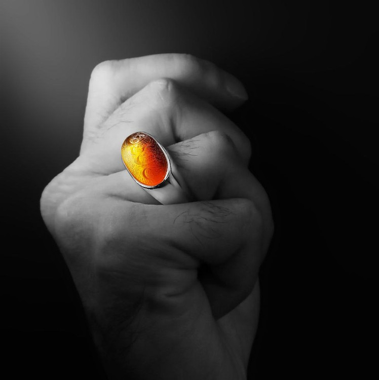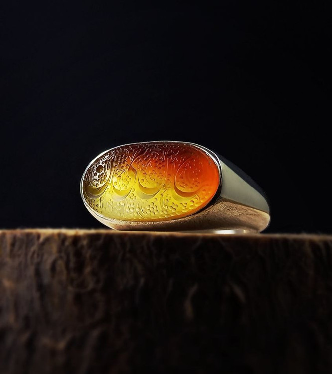 انگشتر فاخر اسپرت با نگین عقیق دو رنگ مزین به نام مبارک حسین؏